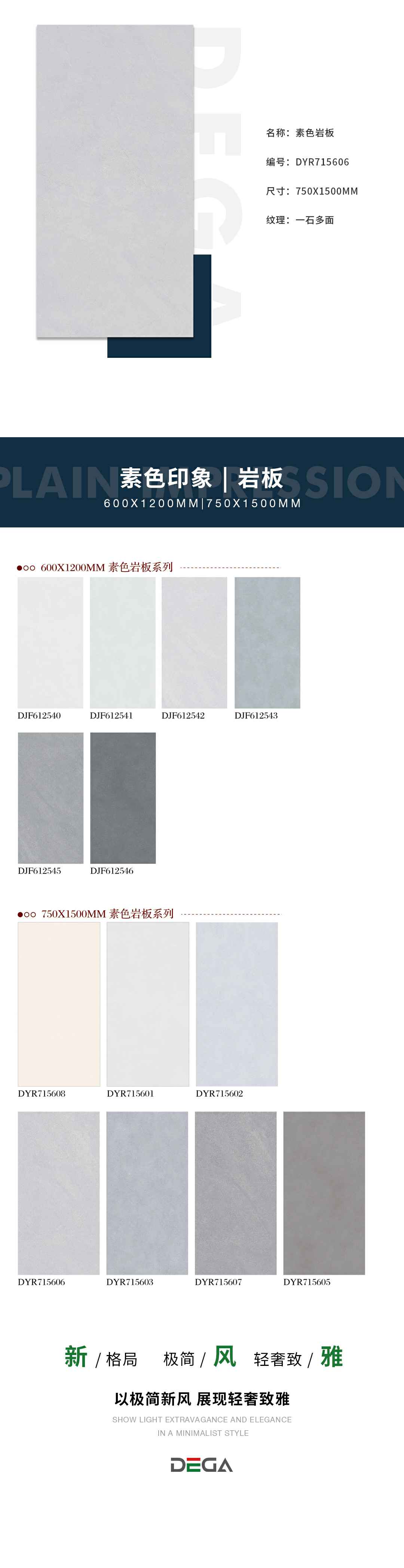 600X1200MM、750X1500MM素色印象|岩板优雅上市